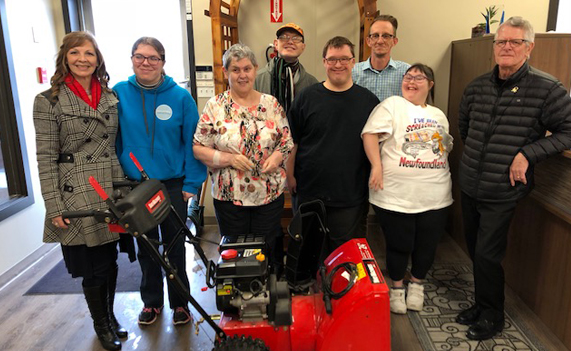 • Accent insurance was pleased to make a donation of a Snowblower to Futuristic Industries for their Group Home. Pictured are Boyd and Janet with members of Futuristic Industries.